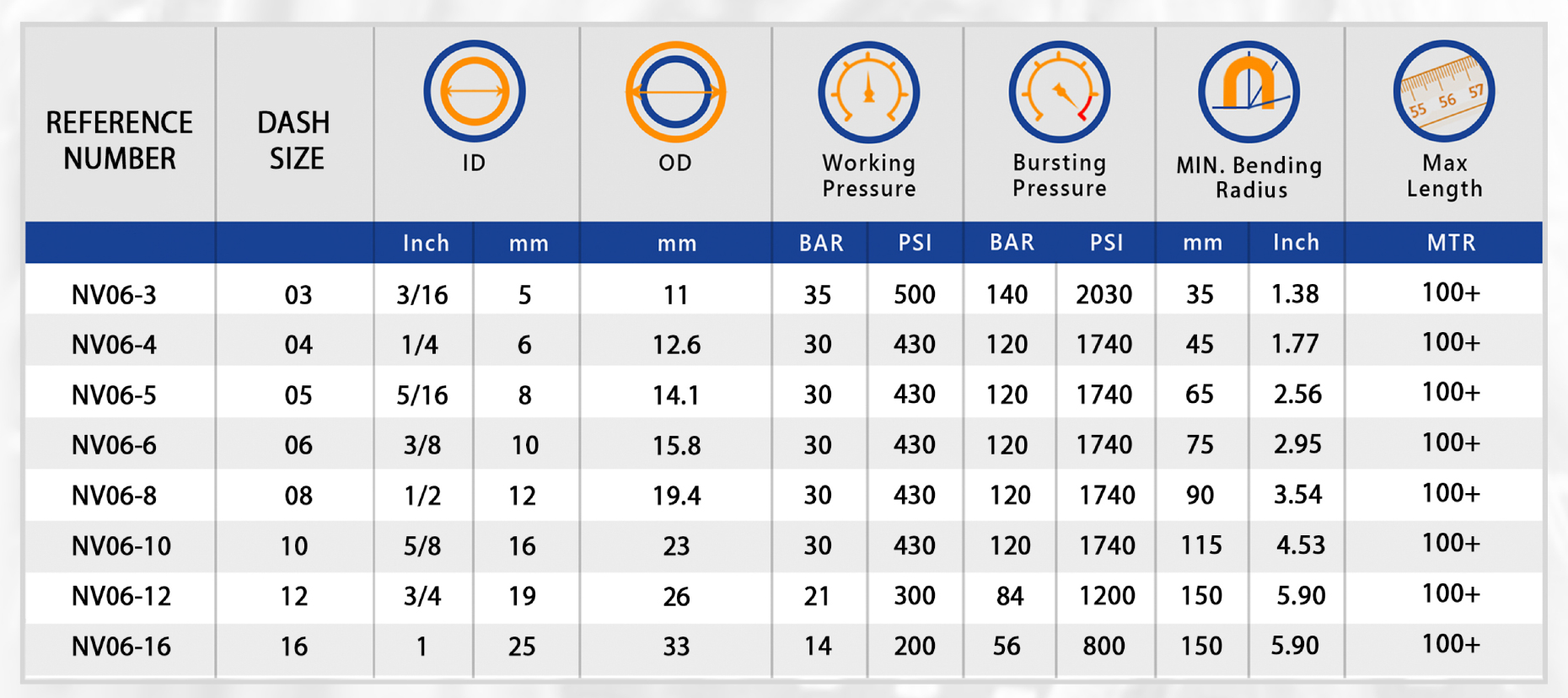 BRANDING: TECHNAV SAE100 R6 with ID, Working Pressure and Manufacturing date.